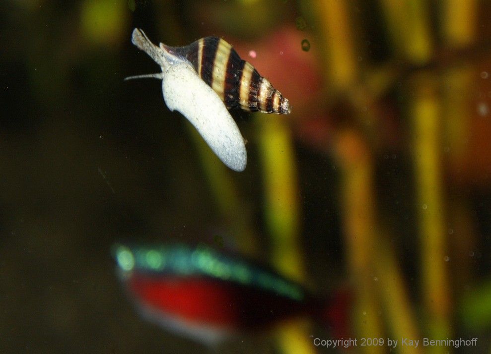 durch Pflanzenzukauf wild vermehrende Turmdeckelschnecken eingefangen hat. Diese können manchmal zur Plage werden. Mit